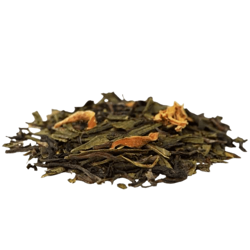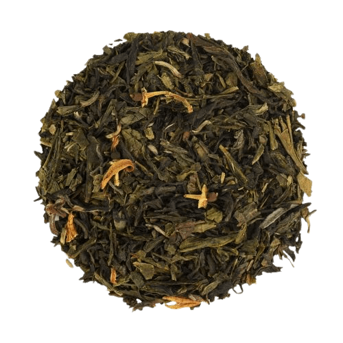Thé vert China Sencha*, thé vert China Jasmin*, China Green Jade*, fleurs d’oranger*, arôme naturel de fleur d’oranger, arôme naturel d’ylang ylang, arôme naturel d’orange, arôme naturel de pamplemousse.
